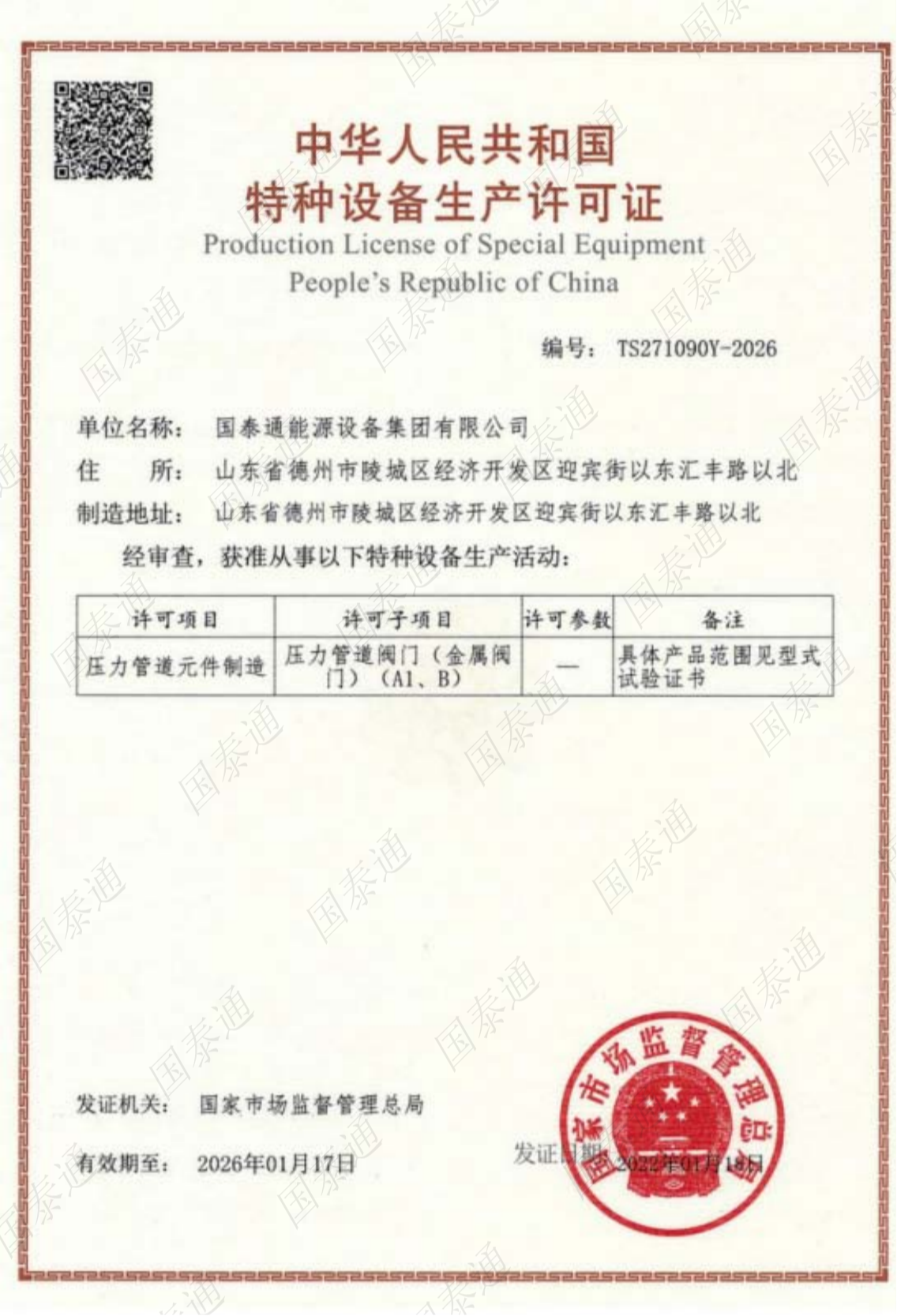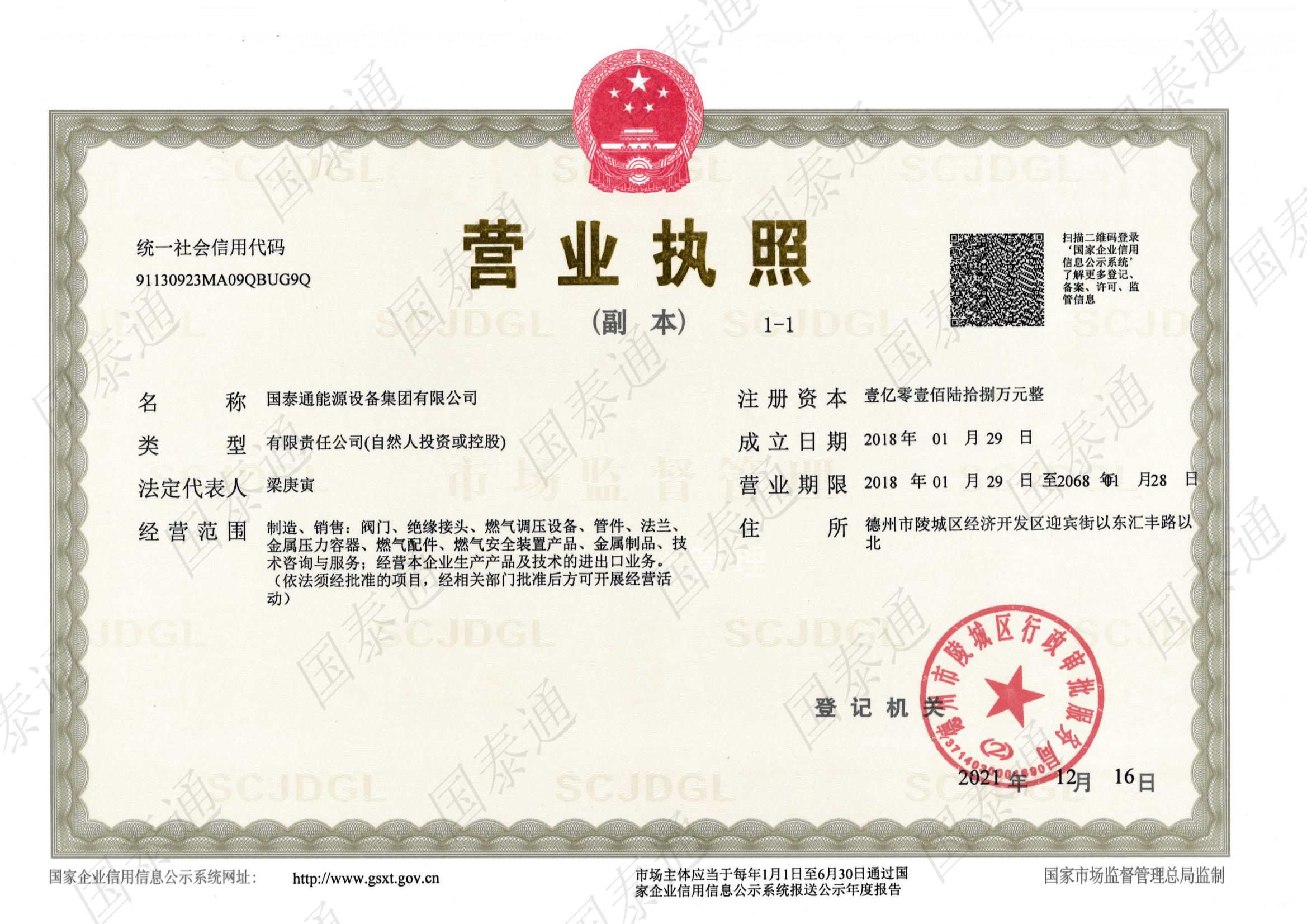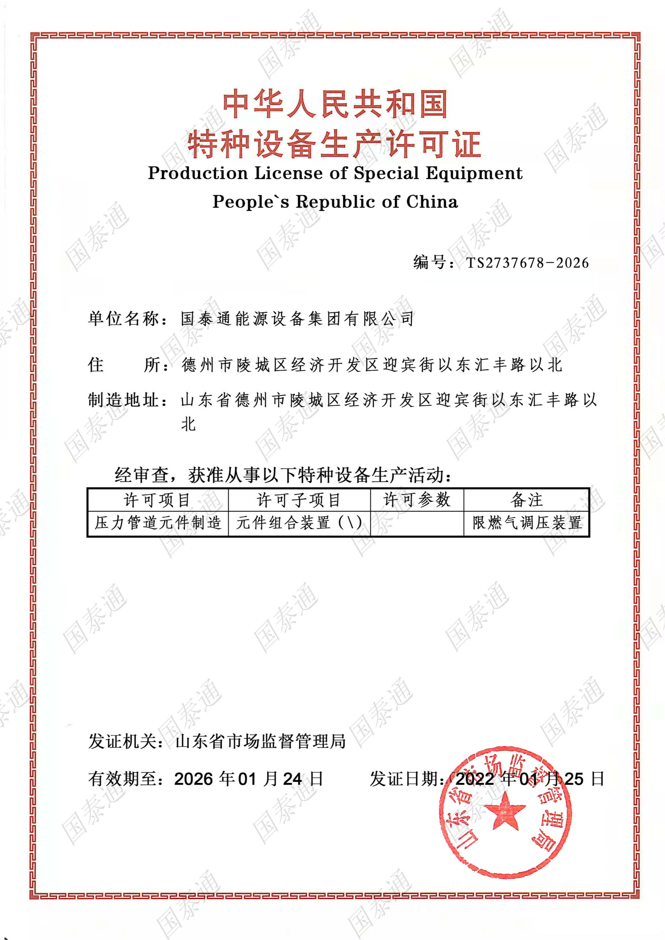 國泰通能源設備集團有限公司是一家國家級高新技術(shù)企業(yè),專注于閥門和燃氣調(diào)壓輸配設備設計、研發(fā)、生產(chǎn)、銷售、服務于一體的系統(tǒng)集成解決方案服務商。公司成立于2011年,注冊資金10168萬元,擁有北京運營中心和山東生產(chǎn)中心兩大基地,北京運營中心主要承擔集團公司的戰(zhàn)略規(guī)劃發(fā)展,山東生產(chǎn)基地承擔集團公司產(chǎn)品研發(fā)、生產(chǎn)和銷售服務,集團公司山東生產(chǎn)基地占地面積5萬余平方米,總建筑面積3萬余平方米,有著現(xiàn)代化的廠房和辦公大樓。集團公司經(jīng)過十多年的茁壯發(fā)展,現(xiàn)擁有中、高級工程師27名,生產(chǎn)服務技術(shù)人員二百余人......